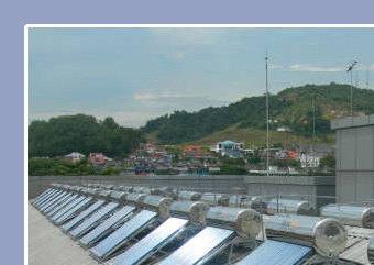 The picture above shows the 36 units Microsolar M60VTHE 264 litres solar water heater installation on the roof at a University in Kuala Lumpur, Malaysia on a sunny day. But during the rainy and cloudy monsoon months the Microsolar is still able to provide hot water without electricity backup heating. Not many other solar heaters are able to do that. The Microsolar is a stand alone