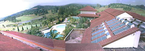 The Rahman Putra Golf Club, Sungai Buloh, Selangor, Malaysia, became the first in the world to use the new high efficiency multivalve solar water heaters. 10 units of Microsolar Water Heaters were installed in March 2001 to replace the older generation single valve solar water heaters whose indirect heating fluid had leaked out over the last eight years, and the panels had since been disconnected (visible extreme right, behind the Microsolars).